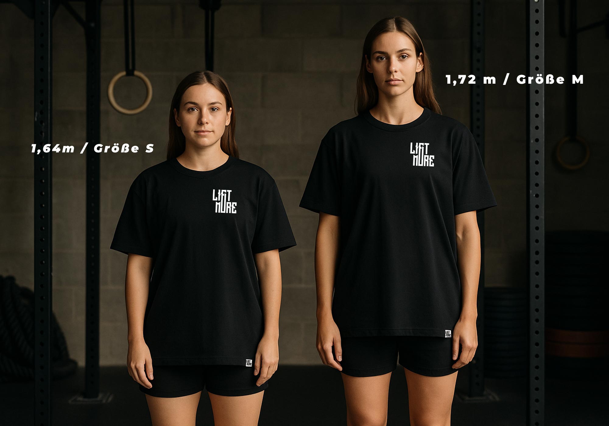 Unsere Shirts sind so geschnitten, dass sie sportlich locker sitzen und trotzdem jede Bewegung mitmachen. Egal ob du z.B. 1,64 m oder 1,72 m groß bist – mit unserer Größentabelle findest du garantiert deine Passform.